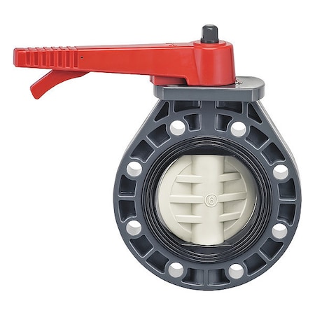Butterfly Valve, Wafer Style, Body Material PVC, Max. Pressure 150 psi, Pipe Size 6 in., Liner Material EPDM, Disc Material Polypropylene (PP) , Handle Type Lever, Handle Material ABS