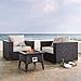 Convene Collection EEI-3727-EXP-WHI-SET 3 PC Set Outdoor Patio with Fire Pit, Powder Coated Aluminum Frame, Polyethylene Wicker Rattan Weave and Machine Washable All-Weather Cushions in Espresso and White Color