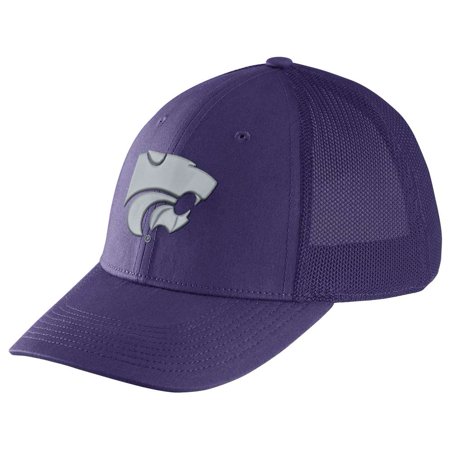 Kansas State Wildcats mesh back hat by Nike. The front panels are twill and the back panels are soft hand mesh. This cap features Nike's Vapor bill construction to reduce weight and enhance comfort. The front has a 3D embroidered Kansas State Wildcats team logo and a Nike swoosh embroidered at center back. This cap has a Dri-FIT terry sweatband. One size fits most sizing. Front Panels: 58% Cotton, 42% Polyester. Back Panels: 98% Polyester, 2% Spandex.
