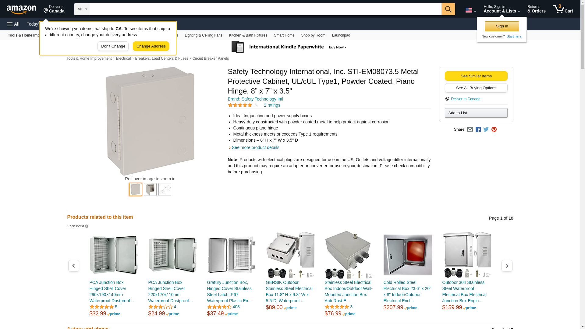Safety Technology International, Inc. STI-EM08073.5 Metal Protective Cabinet, UL/cUL Type1, Powder Coated, Piano Hinge, 8” x 7” x 3.5"