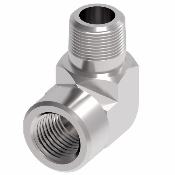 - 90-degree elbow to connect a National Pipe Thread (NPT) male to an NPT male at a 90-degree angle