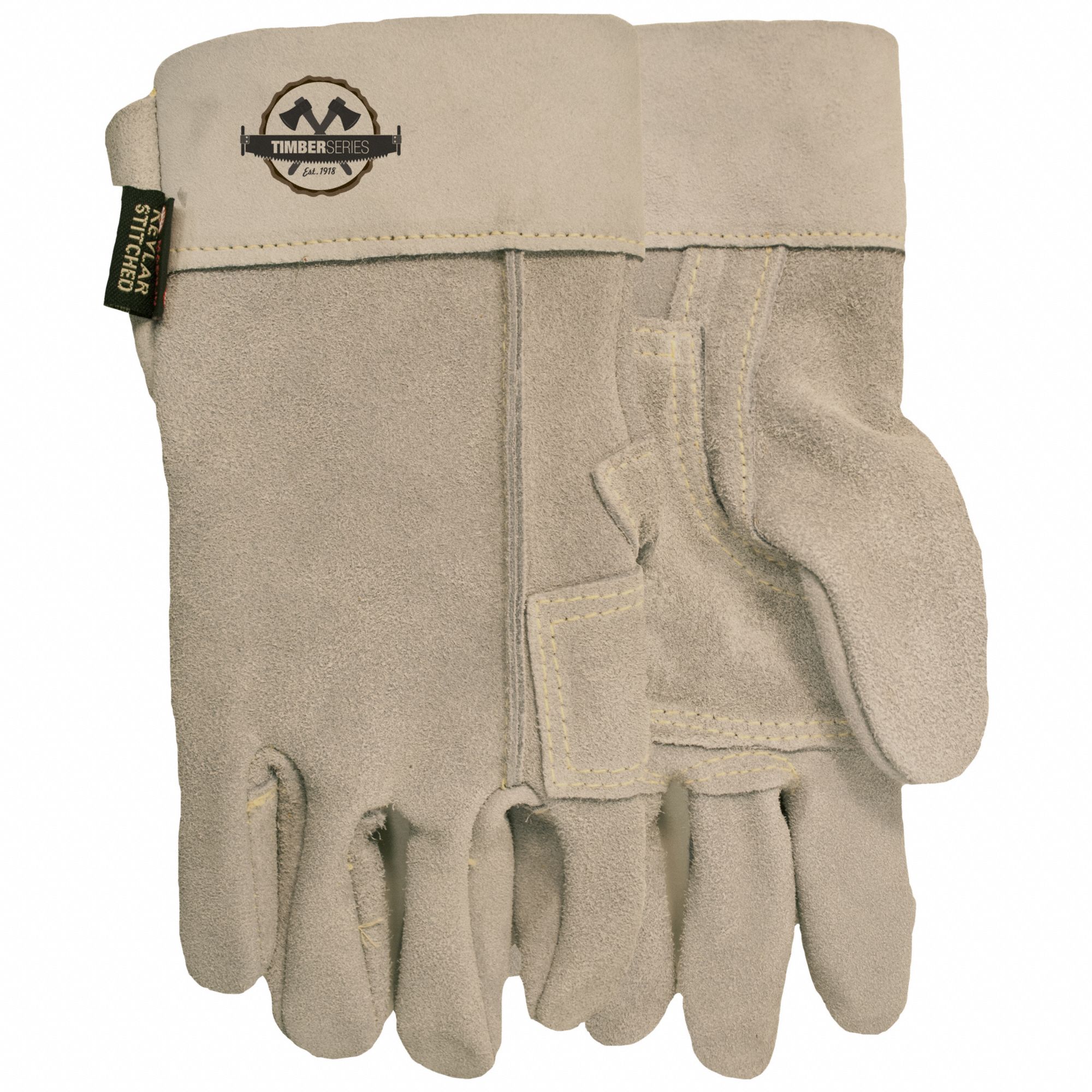 LEATHER GLOVES, CLUTE CUT, STRAIGHT THUMB, SLIP-ON, UNLINED, M/SIZE 8, GREY, COWHIDE/KEVLAR, PAIR