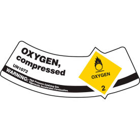 Accuform Cylinder Shoulder Label, Oxygen Compressed UN1072 Warning, 2" x 5 1/4", Adhesive Vinyl, 5/PK