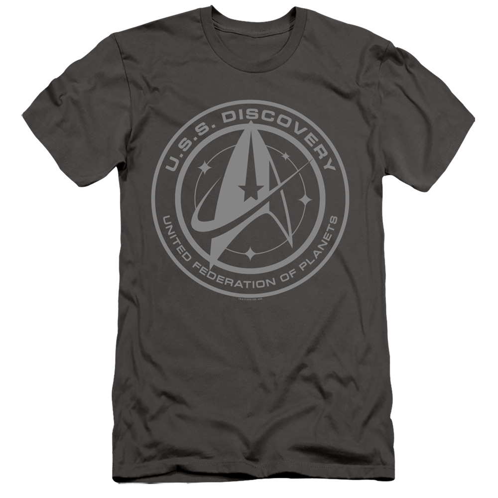 Trevco CBS2564-SF-1 Star Trek Discovery & Discovery Crest-Short Sleeve Adult 30-1 T-Shirt, Charcoal - Small