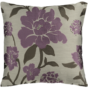 Artistic Weavers HH-048 Hand Crafted 88% Polyester / 12% Polyamide Plum 22" x 22" Floral Decorative Pillow