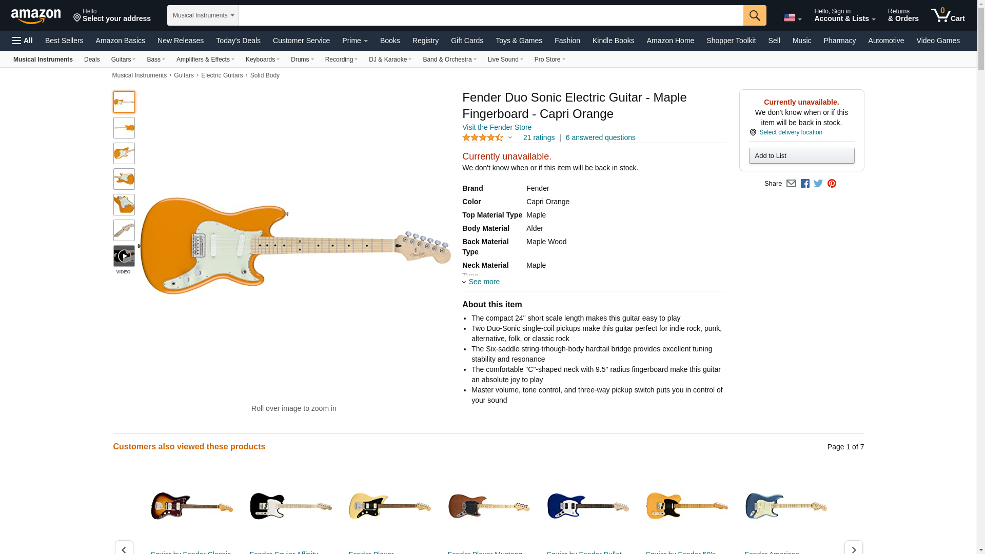 Fender Duo-Sonic Capri Orange Maple Fingerboard Electric Guitar w/Stand and Tun