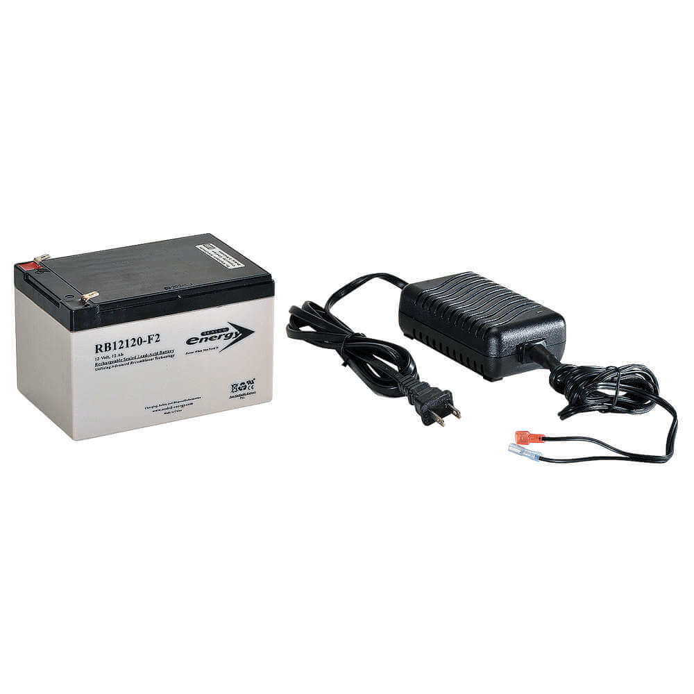 - <b>Price For:</b> Each <b>Voltage</b>: 12VDC <b>Battery Recharge Time</b>: 4 hr. <b>Type</b>: Low Maintenance and Rechargeable <b>Item</b>: Spare Battery Kit <b>Includes</b>: Charger (29JA04) with Battery (29JA02) <b>Country of Origin (subject to change)</b>: China