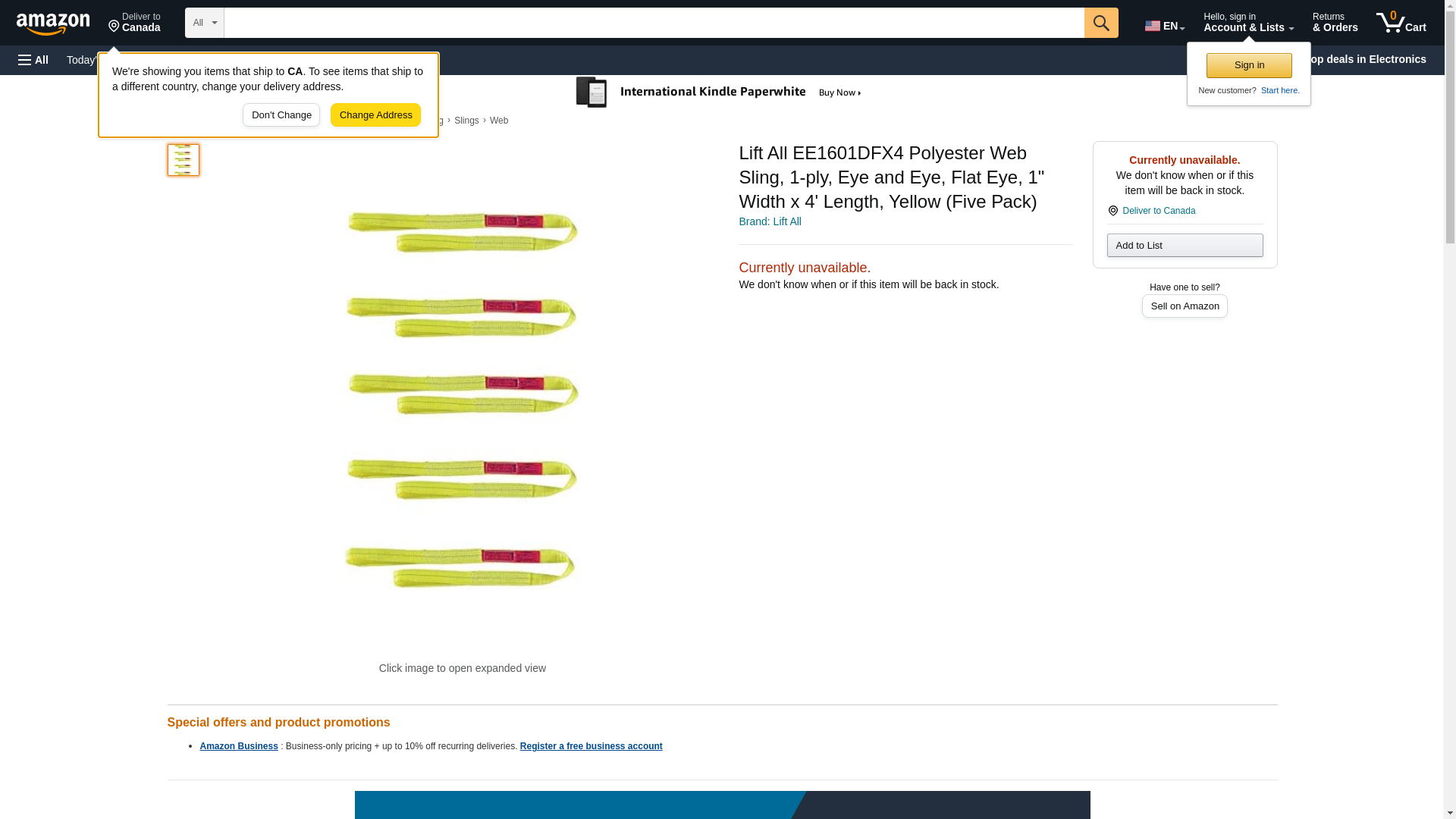Lift All EE1601DFX4 Polyester Web Sling, 1-ply, Eye and Eye, Flat Eye, 1" Width x 4' Length, Yellow (Fіvе Расk)