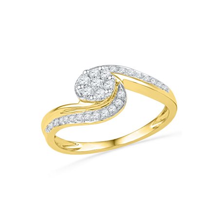 10kt Yellow Gold Womens Round Diamond Flower Cluster Curved Ring 1/3 Cttw