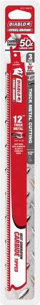 'Reciprocating Saw Blade, Primary Saw Application Metal, Length 12 In., Teeth per Inch 8, Material Coated Bi-Metal with Carbide Teeth, Back Straight, Shank Universal, Height 1 In., Application Mechanical, Electrical, Plumbing, Construction, Metalworking, Package Quantity 3'