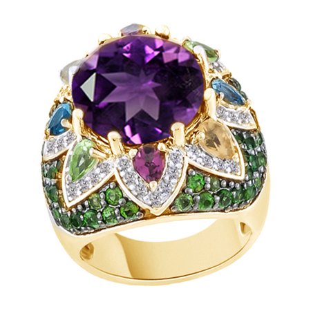 <ul> <li>Metal Type : 14k Yellow Gold Over Sterling Silver GUARANTEED, Authenticated with a 925 Stamp</li> <li>Gem Type :- Simulated Multi Color Stone (Lab Created)</li> <li>Stone Shape :- Round Shape & Pear Shape</li> <li>Stone Setting type :- prongs</li> <li>Stone Clarity :- VVS1-VVS2, Stone Color :- Multiple-colors</li> </ul>