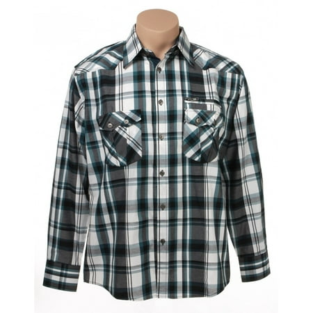 Men's long sleeve Rodeo Black and Green Plaid Western Shirt. Two pockets. Slim fit.