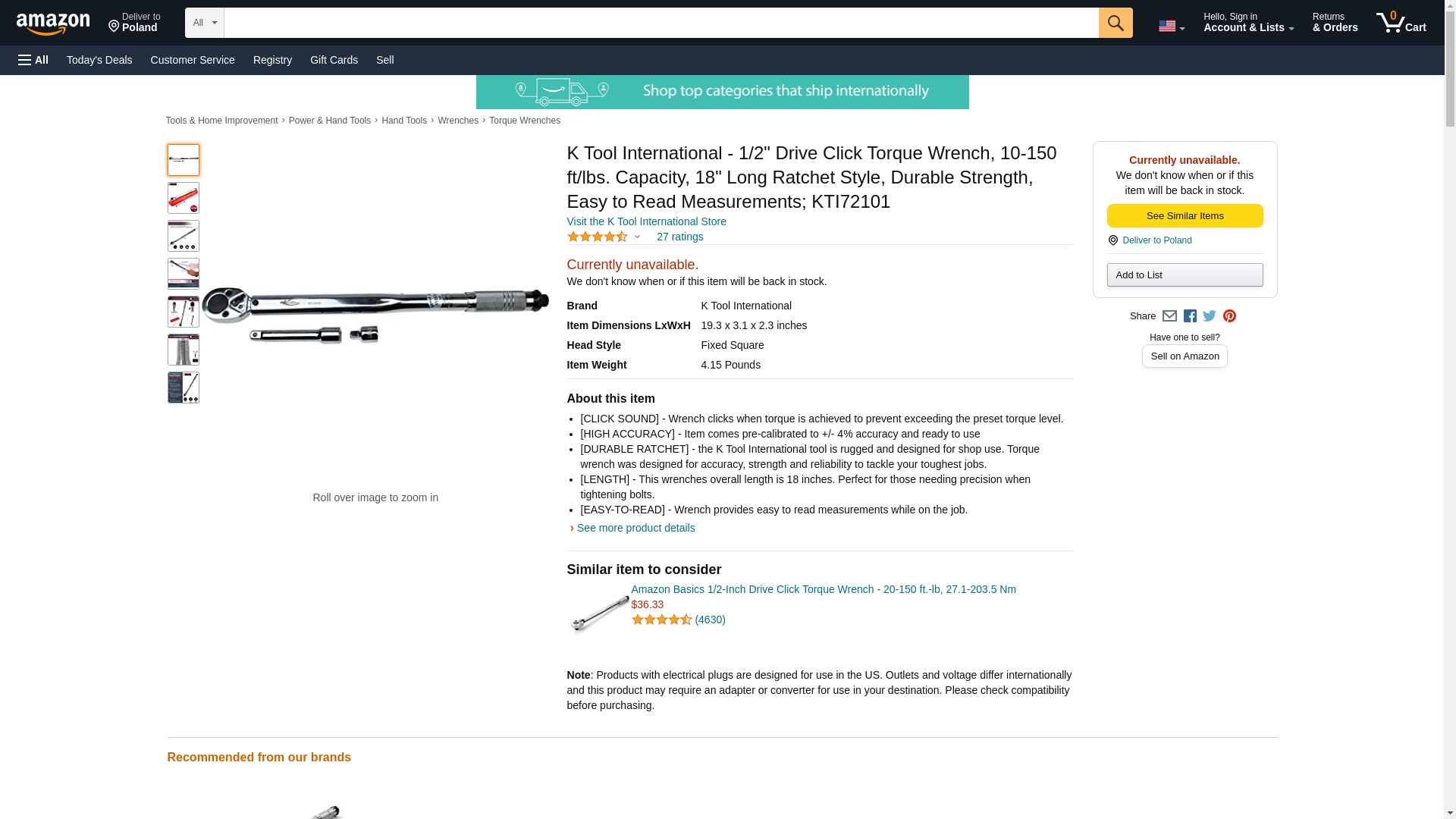 Buy K Tool International KTI72101 As low as $35.17 Out of Stock K Tool International KTI-72101 1/2" Drive Ratcheting-style Torque Wrench, 10-150 In/lbs.