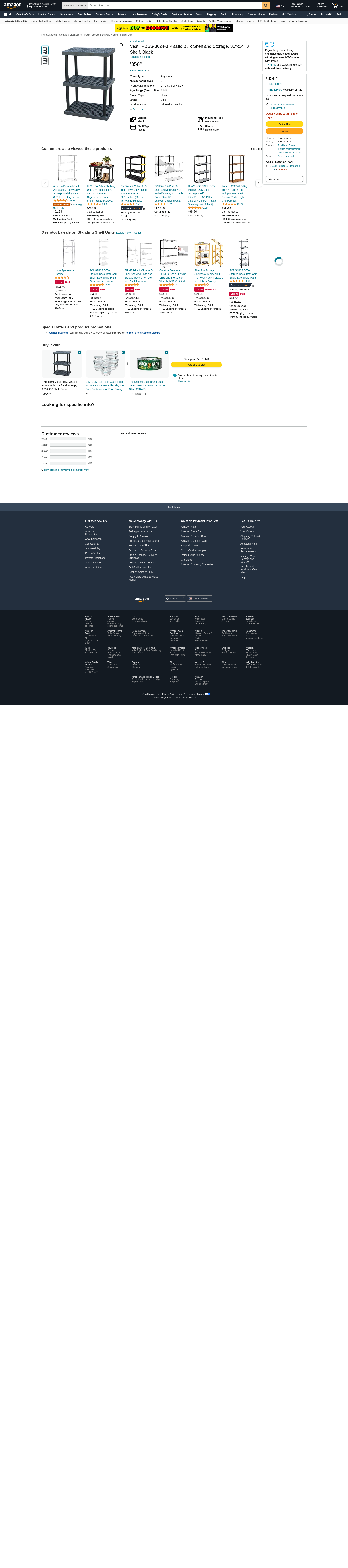 Vestil PBSS-3624-3 Plastic Bulk Shelf and Storage, 36"x24" 3 Shelf, Black