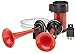 - Two Red Trumpet Style Air Horns with included Air Compressor for a distinctive and stylish look. HELLA horns guarantee best functionality, optimum fit and long lasting customer satisfaction.