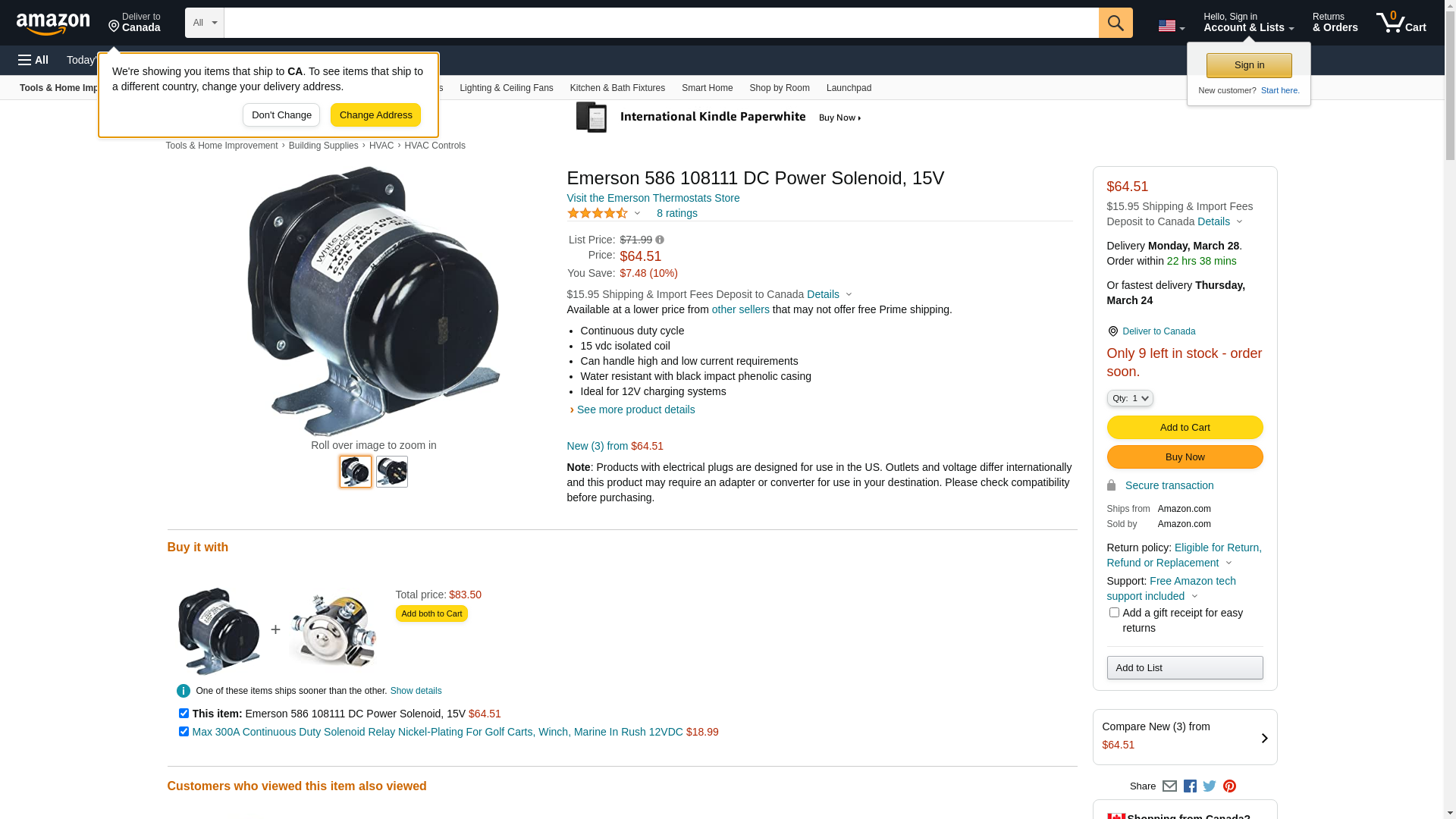 Emerson 586 108111 DC Power Solenoid, 15V