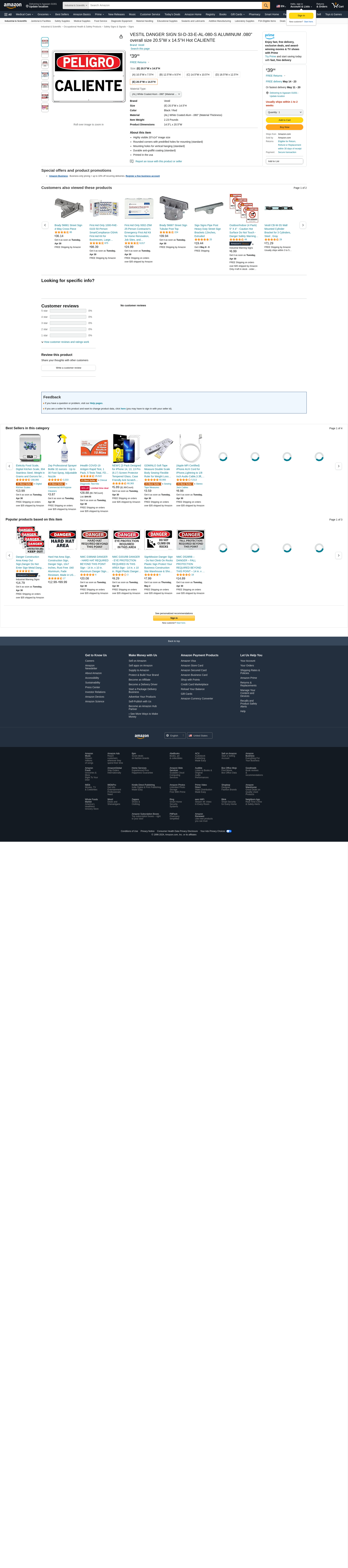 VESTIL DANGER SIGN SI-D-33-E-AL-080-S ALUMINUM .080" overall size 20.5"W x 14.5"H Hot CALIENTE