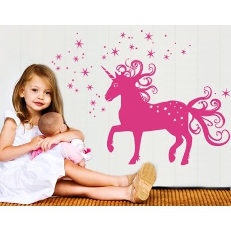 Magical Unicorn Wall Decal - Wall Sticker, Vinyl Wall Art, Home Decor, Wall Mural - 2229 - 35in x 26in, Gold