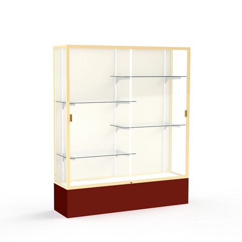 Waddell Spirit Plaque Back Display Case, 60W by 72H by 16" D, Champagne Gold Finish with Maroon Base