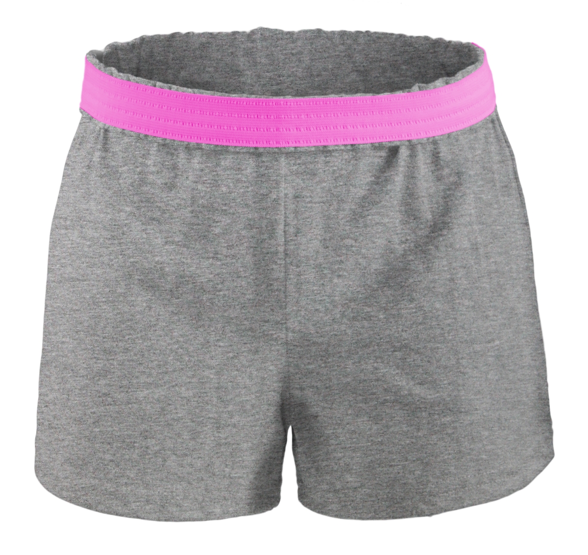 Soffe M037E0YGSML 3 in. 7 oz Elastic Camp Short Jersey for Junior, Charcoal Heather & Neon Pink - Small
