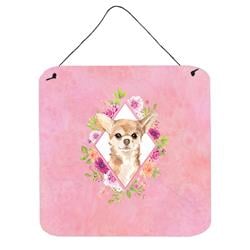 Carolines Treasures CK4245DS66 6 x 6 in. Chihuahua Pink Flowers Wall or Door Hanging Prints