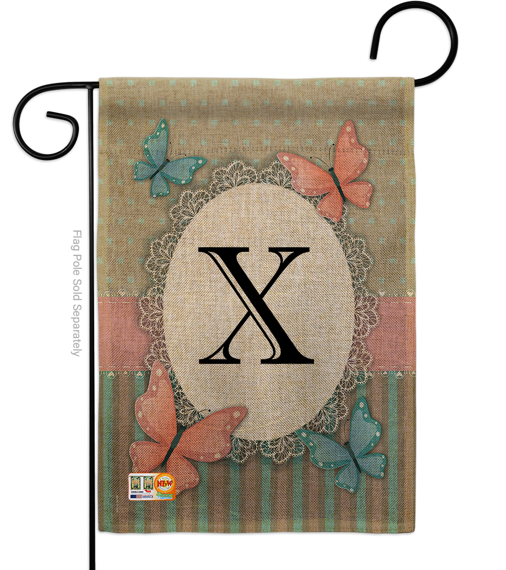 Breeze Decor BD-BG-G-130154-IP-DB-D-US14-BD 13 x 18.5 in. Butterflies X Initial Burlap Garden Friends Bugs & Frogs Impressions Decorative Vertical Double Sided Flag