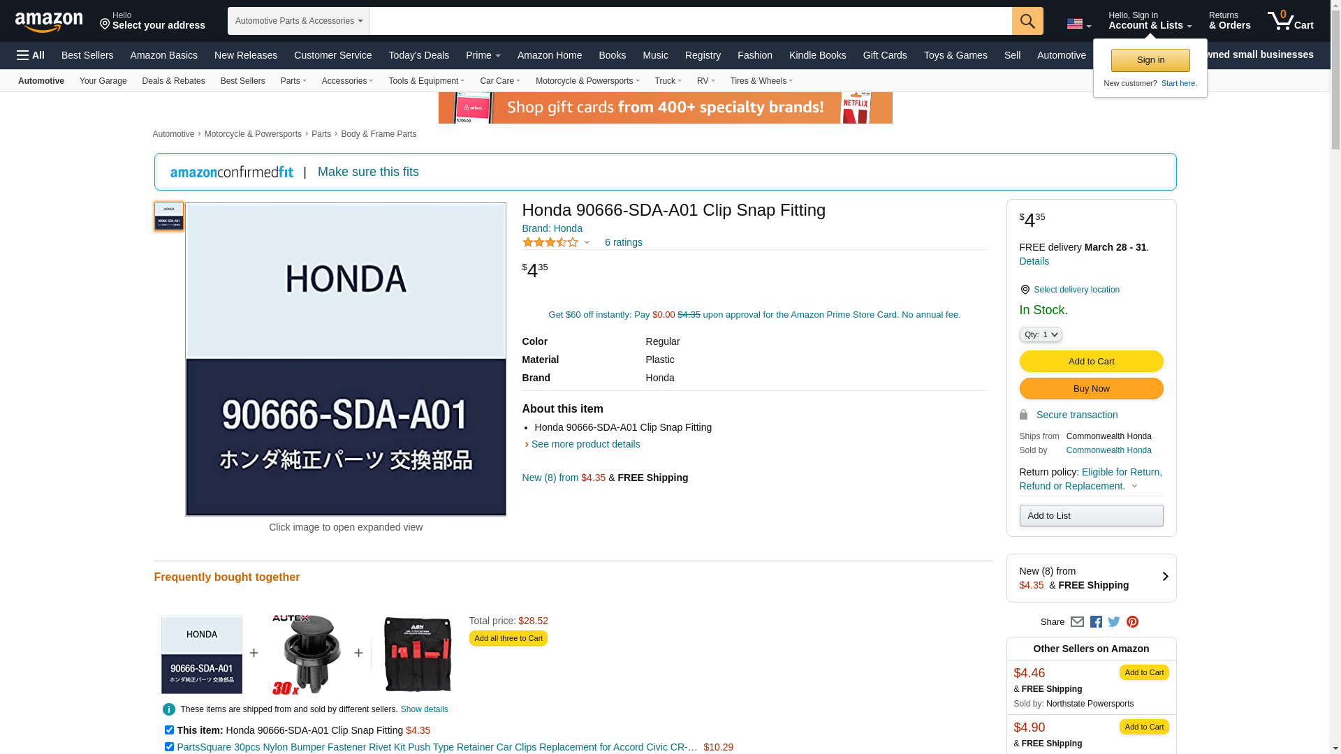 Honda 90666-Sda-A01 Clip, Snap Fitting