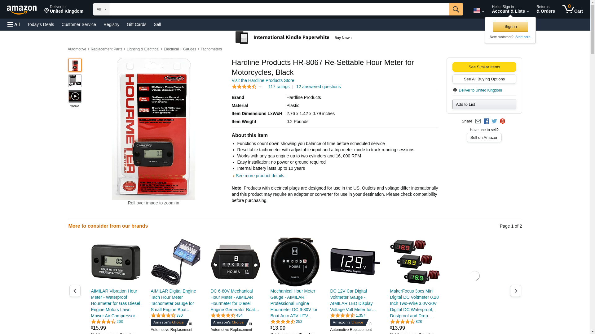Hardline Products HR-8067 Re-Settable Hour Meter for Motorcycles, Black