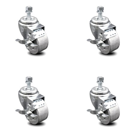 Listing is for a set of four (4) Service Caster Series #20 swivel casters, four (4) swivel 3/8" threaded stem casters with top lock brakes, 3” diameter by 1-1/2” wide semi steel cast iron wheels. Supports a total weight of 1,200lbs (300lbs/per caster). When searching for a reliable and durable solution to your caster needs, consider Service Caster’s Series 20 roller bearing semi-steel cast iron casters. The Service Caster Series #20 is ideal for light and medium duty material handling, carts, equipment, and shop projects. The zinc plated finish provides durability under any condition, while the semi-steel wheels are abrasion resistant and rugged, maintaining effortless rolling under heavier loads, and provides a cost-effective solution over steel wheels. The roller bearing is capable of carrying greater loads while also providing smoother rolling motion. It has a split outer race shell into which the roller assembly is inserted. Combination seal/thrust retainer washers protect the bearing from dirt, water, and chemicals. They also help absorb thrust friction (Note: roller bearing must be used with hardened spanner bushing or hardened shaft). Mounting options include top plate, bolt hole and standard and metric threaded stem sizes. Service Caster is unsurpassed in quality, reliability, and excellent customer service. Count on us to move you forward.