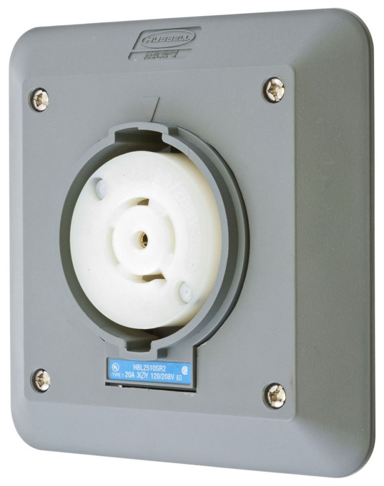 Hubbell HBL2510SR2 Locking Safety Shroud Receptacle, L21-20R, 2 Gang Surface Mount, Gray