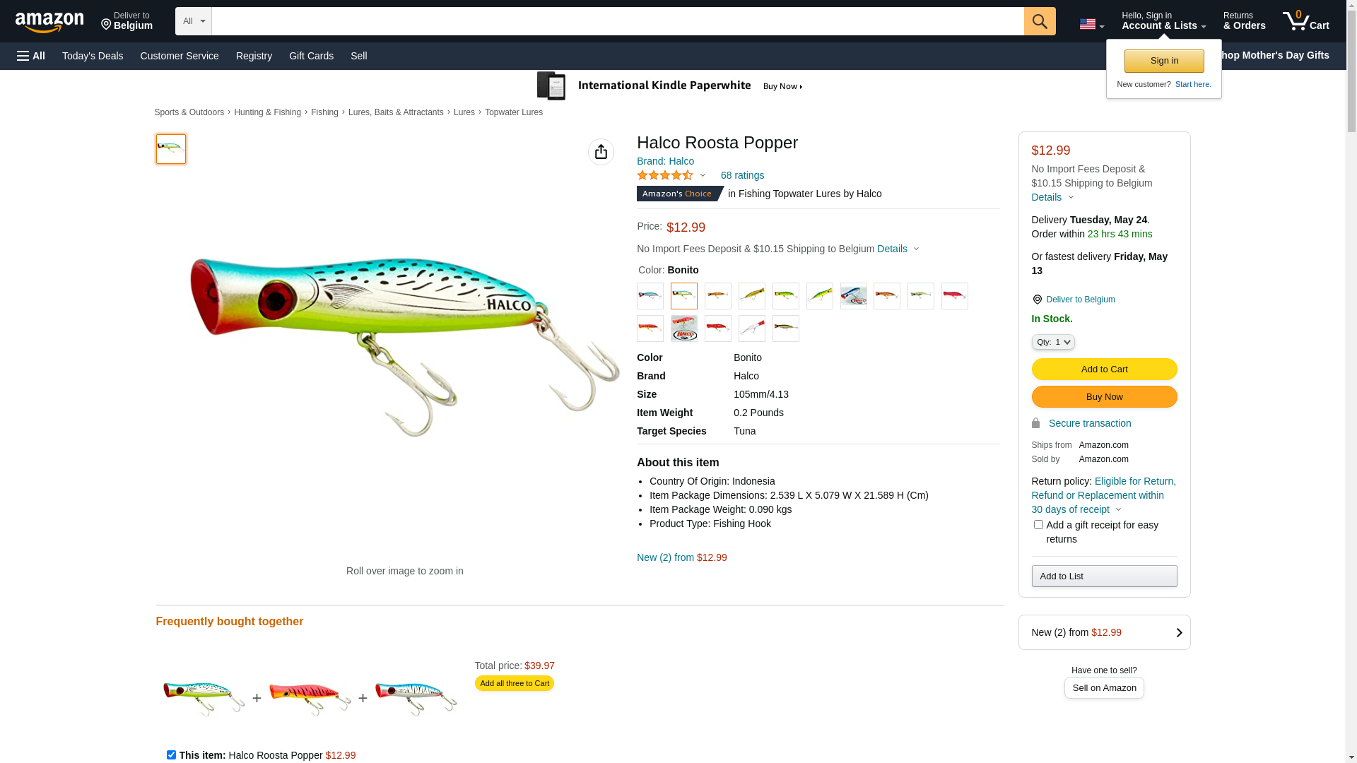 Halco RP105#H69 105 Roosta Popper, Bonito
