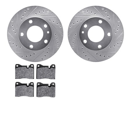 7602-31007, Rotors-Drilled and Slotted-Silver with 5000 Euro Ceramic Brake Pads, Zinc Coated