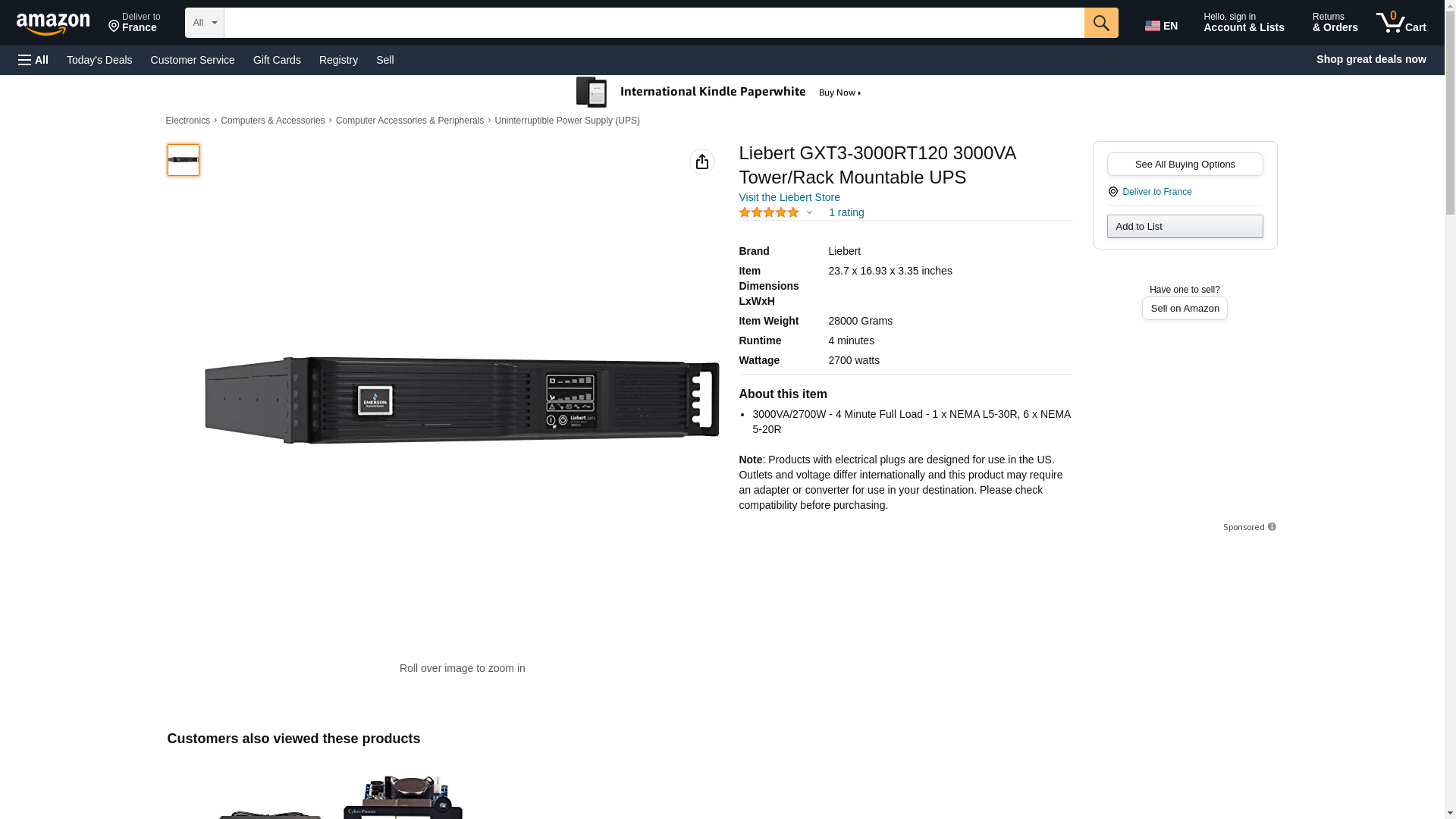 - Liebert Gxt3-3000rt120 3000va Tower/rack Mountable Ups - 3000va/2700w - 4 Minute Full Load - 1 X Nema L5-30r, 6 X Nema 5-20r