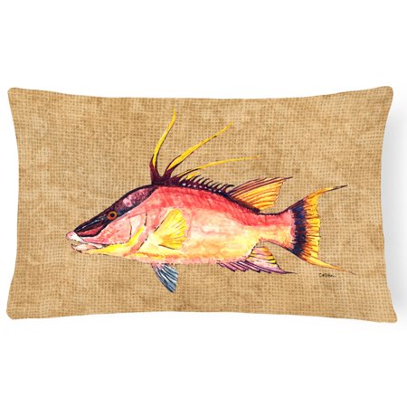 Caroline's Treasures 8803PW1216 Hog Snapper Canvas Fabric Decorative Pillow Machine Washable, Indoor Outdoor Decorative Pillow for Couch, Bed or Patio, 12HX16W