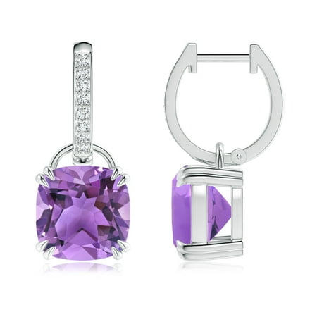 <ul> <li>Cushion Amethyst Drop Earrings with Diamond Accents in 14K White Gold (9mm Amethyst)</li> <li>Approximate Carat Total Weight 5.13 ct</li> <li>Hinged Clip Closure</li> <li>Amethyst are Heat treated for enhanced brilliance and lustre.</li> <li>Free Certificate of Authenticity and 30-Days Easy Returns.</li> <li>*Get a FREE Gemstone Pendant in Silver w/o Chain</li> </ul>