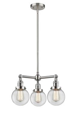 Innovations 207-SN-G202-6-LED 3 Light Vintage Dimmable LED Chandelier, Brushed Satin Nickel