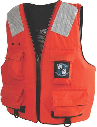 I422ORG-03-000F Size: Medium Features: -First mate life vest.-Adjustable side tabs for a quick contoured fit.-Hook and loop closure on pockets.-Contoured foam cut Sturdy D-rings.-Strong vislon zipper.-3M Scotchlite reflective material.-SOLAS-grade 6755 on panels. Options: -Available in medium, xlarge, 2xlarge, 3xlarge and 4xlarge sizes. Construction: -Constructed of soft comfortable flotation foam for all-day wear. Color/Finish: -Color: Orange. Dimensions: -Dimensions: 2-4.25'' H x 13.75-23.5'' W x 20.5-23.5'' D.