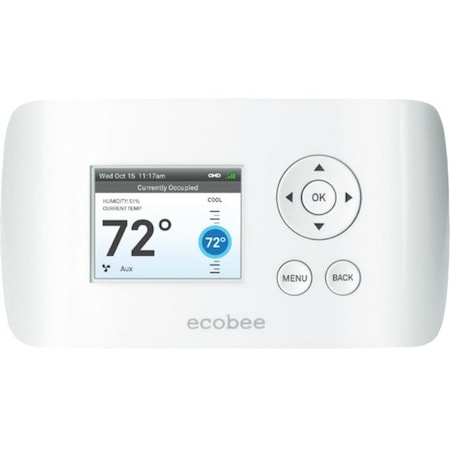 Ecobee EB-EMSSI-01 Ecobee 2 Heat 2 Cool Digital WiFi Programmable Thermostat, Energy Management System, Commercial Thermostat, Full Color Non-Touch Screen, Power Method: Hardwired, 24V, 1 Lbs