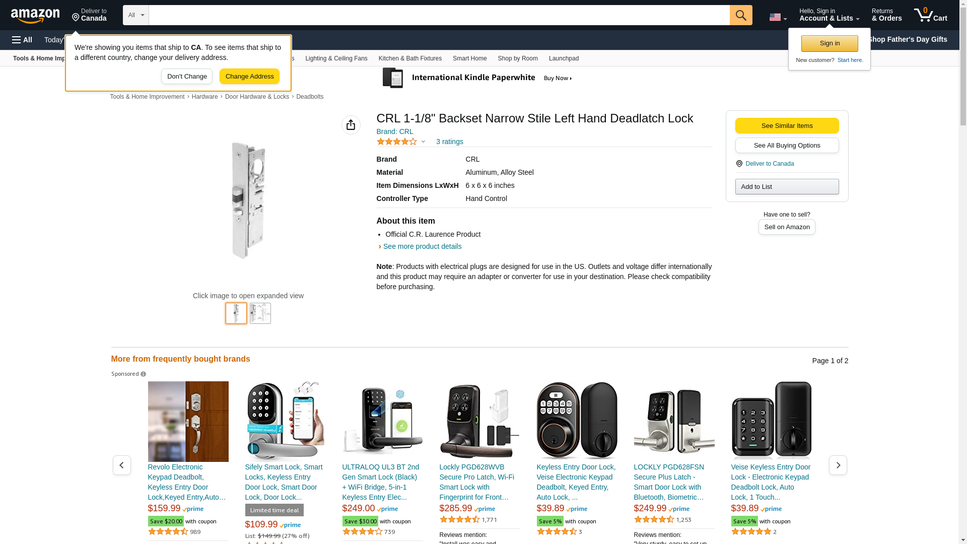 C.R. LAURENCE DL2140BLH CRL 1-1/8" Backset Narrow Stile Left Hand Deadlatch Lock