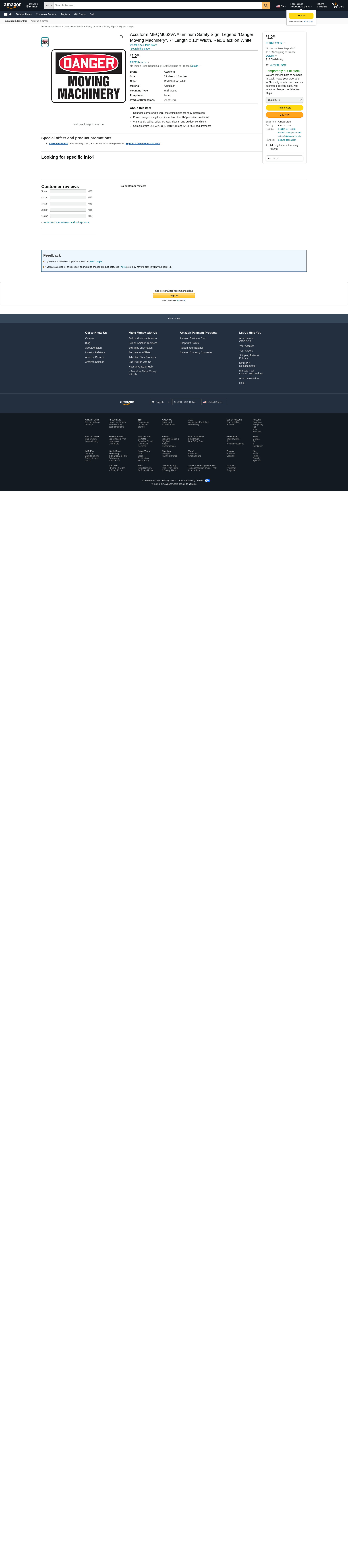 Order MEQM062VA by Accuform 7" x 10" Aluminum Sign: "Danger Moving Machinery" - US Mega Store