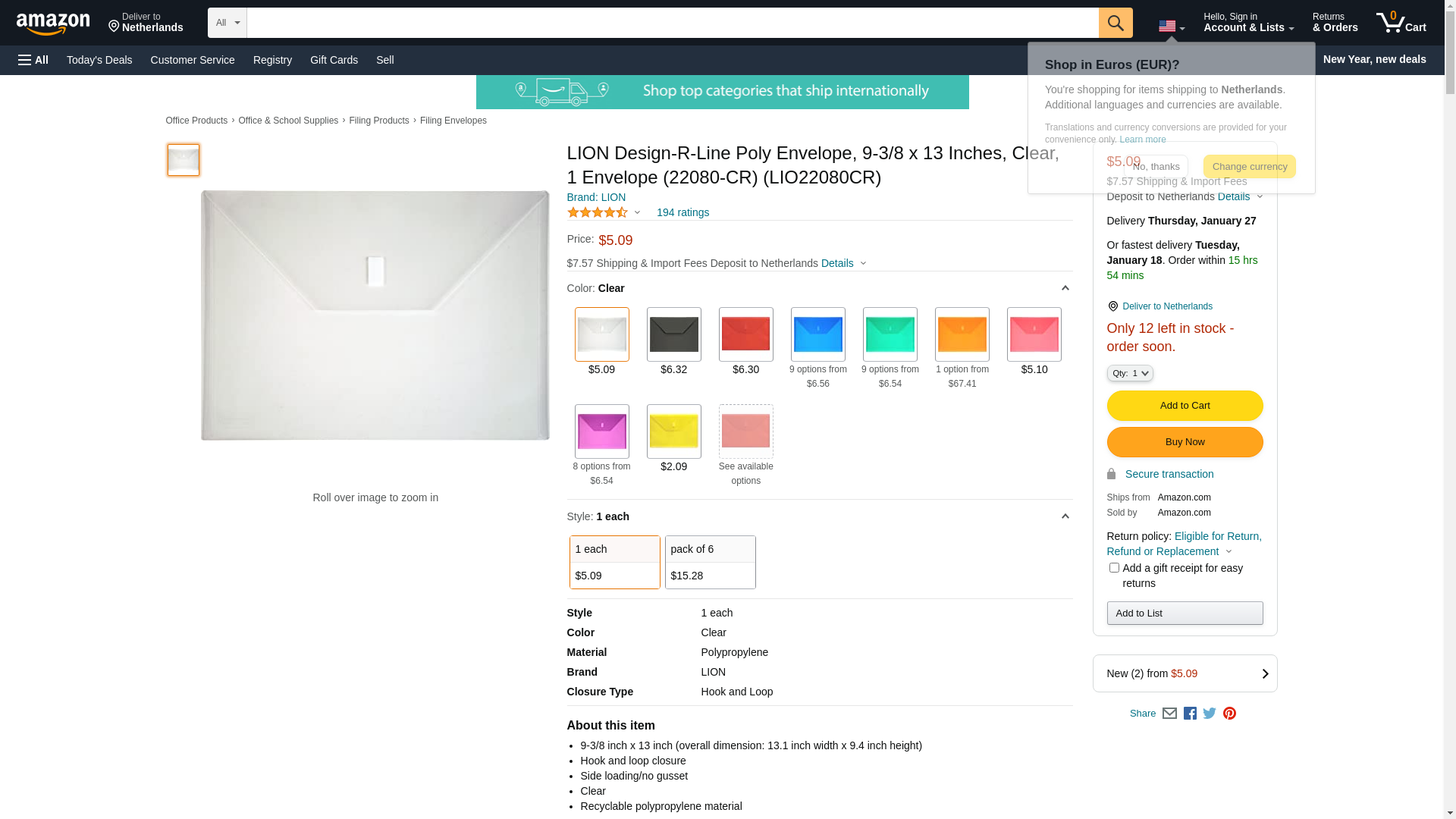 LIO22080CR Features: -Features Weatherproof: Hook and Loop Closure. -Features Weatherproof: Manufacturer: Lion Office Products, Inc. -Features Weatherproof: Product Model: 22080-CR. -Features Weatherproof: Product Name: Design-R-Line Poly Envelope. -Features Weatherproof: Accessibility: Side-loading. -Features Weatherproof: Manufacturer Part Number: 22080-CR. Product Type: -Poly File Folders. Color: -Clear. Recycled Materials: -Yes. Material: -Polypropylene & Pvc. Dimensions: Overall Height - Top to Bottom: -9.37". Overall Width - Side to Side: -13". Overall Product Weight: -0.08 lbs.