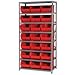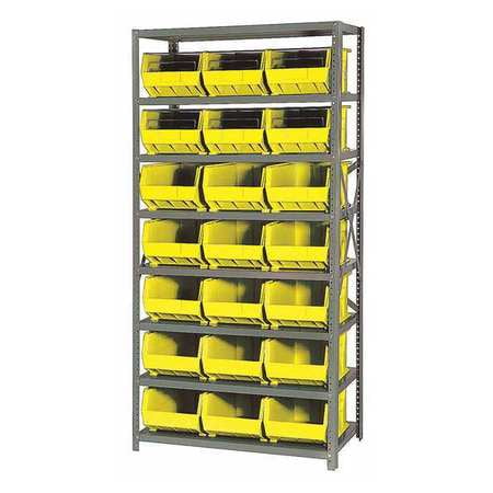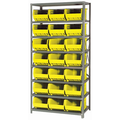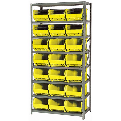 Quantum Storage Systems QSBU-255YL Giant Open Hopper Steel Shelving System, 18" D x 36" W x 75" H, with 8 Shelves and 21 QUS255 Bins, Yellow