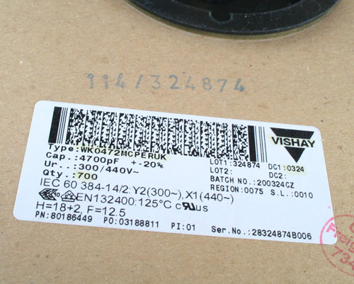 As an Amazon Associate, we earn from qualifying purchases. WK0472MCPERUK VISHAY capacitor 0.0047uF 440V Ceramic Disc VISHAY . WK0472MCPERUK Gallery Attributes Brand name, Manufacturer name, ManufacturerVISHAY Attribute000.0047 uf Attribute01, Voltage440 v Attribute0220% Attribute03, Attribute06- Attribute0412.7 mm (0.500 in) Attribute05radial Attribute07bulk Attribute08700 AttributeKey00capacitance AttributeKey01voltage AttributeKey02tolerance AttributeKey03temperature AttributeKey04lead spacing AttributeKey05lead type AttributeKey06lead style AttributeKey07package AttributeKey08item per pack Extra Product NameWK0472MCPERUK VISHAY capacitor 0.0047uF 440V Ceramic Disc keywordsDiscount Electronic Components, WK0472MCPERUK VISHAY capacitor 0.0047uF 440V Ceramic Disc 2020022921, not only CERAMIC DISC , electronic parts, electronic components moq, multiple, tierMinQty120 MPNWK0472MCPERUK qtyInStock-2 qtySourceFieldMap SKU2020022921 snippetWK0472MCPERUK VISHAY capacitor 0.0047uF 440V Ceramic Disc 2020022921. Thousands of discounted electronic components in stock. No lead time, ship out right away! Electronic parts, tedss.com your source for electronic components. tierPrice10.5000 Distributor offers SellerSKUMOQIn stockMultiplePrices Tedss202002292120-22020 @ $0.50