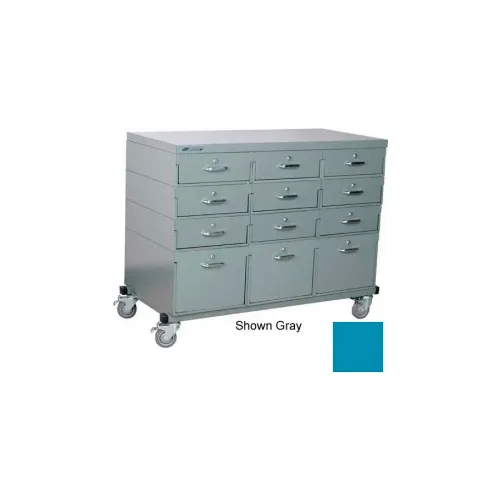 Stackbin® Triple Drawer Bank Mobile 12 Drawer Cabinet, Steel Top Finish, Blue