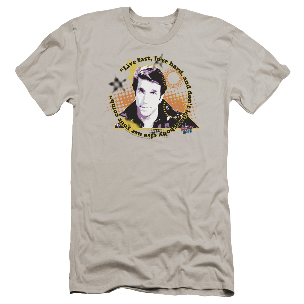 Trevco CBS439-PSF-3 Happy Days & Words To Live By Premium Canvas Adult Cotton Slim Fit 30-1 T-Shirt, Silver - Large