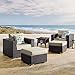 - WICKER RATTAN STYLE - This patio set comes with a brown synthetic rattan weave, while the fire pit features a magnesium oxide molding with a rattan texture while tempered glass beads fill the center