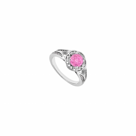Fine Jewelry Vault UBUJS3259AW14CZPS Created Pink Sapphire & CZ Floral Engagement Rings in 14K White Gold - 0.75 CT TGW