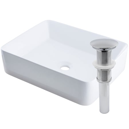 Novatto Rectangular White Porcelain Vessel Sink with Chrome Drain Set