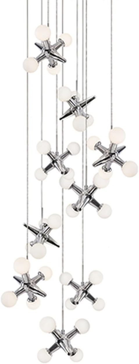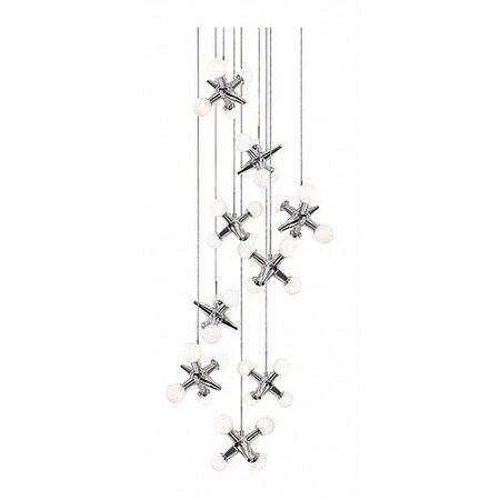 Round LED Jax's multi-pendant with nine unique designed Jax's each with four LED lights which are covered by an elegant round white opal glass. Maximum 120" adjustable Kuzco SSL wire provided with our powerful 120V AC LED technology, 90W; fully dimmable. Available in single, many multi-pendants and chandeliers; see series for full family details.