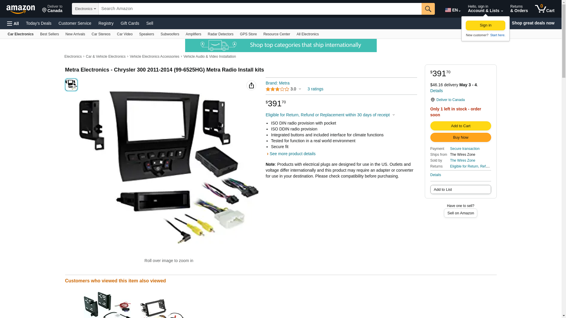 | Feature | Installation Dash Kit for Single and Double DIN Head units For select 2011 - Up Chrysler 300 Vehicles |